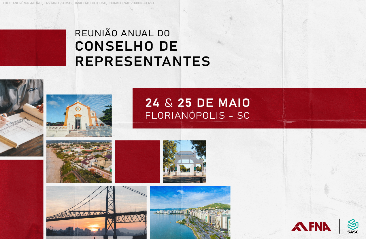 Entre os dias 24 e 25 de maio a Federação Nacional dos Arquitetos e Urbanistas (FNA), em parceria com o Sindicato dos Arquitetos e Urbanistas no Estado de Santa Catarina (SASC), realiza a Reunião Anual do Conselho de Representantes, em Florianópolis (SC).
